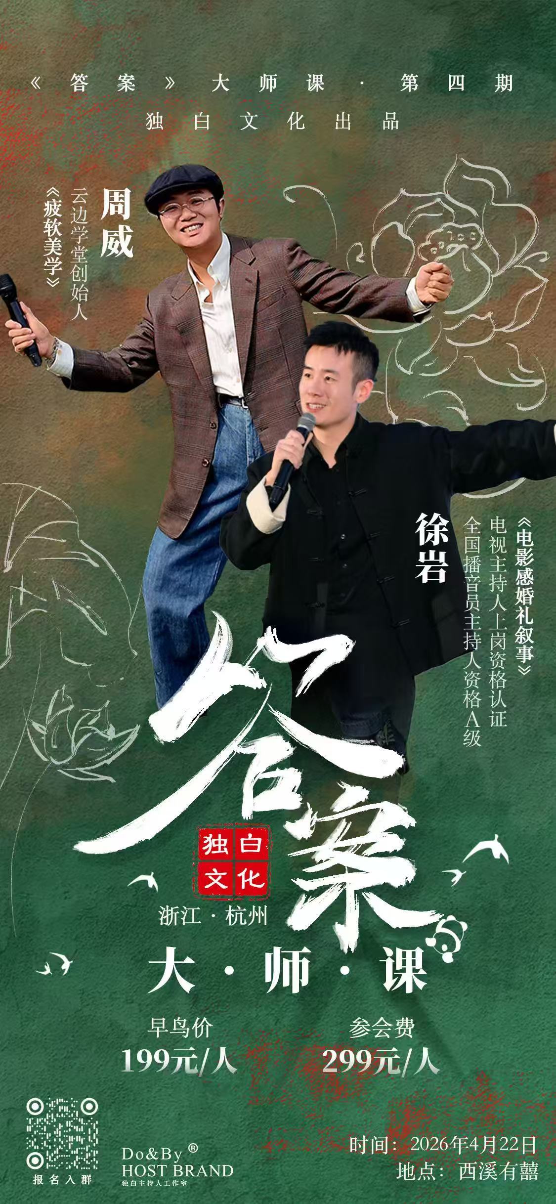 #2026独白·大师课 #徐岩×周威×独白文化 巅峰对话,杭城论剑; 以声为刃,以技为锋。 共赴一场主持界的顶级修行。